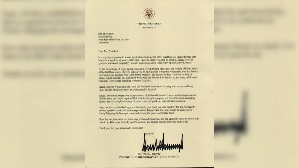 O presidente dos Estados Unidos, Donald Trump, enviou uma carta para o presidente de Israel, Isaac Herzog, pedindo que ele considere a concessão de um indulto ao primeiro-ministro Benjamin Netanyahu, que enfrenta um julgamento de corrupção.