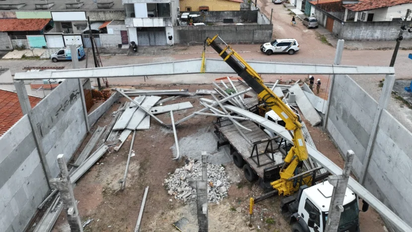 A Polícia Científica do Rio Grande do Norte realizou, neste domingo 9, uma perícia no galpão em construção que desabou no último sábado 8 em São Gonçalo do Amarante, na Grande Natal. Duas pessoas morreram e uma ficou ferida.