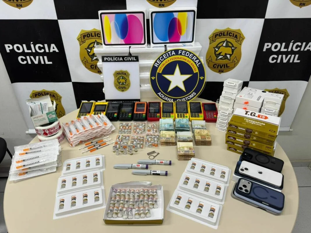De acordo com os policiais, o pacote continha 56 frascos de tirzepatida sem registro na Agência Nacional de Vigilância Sanitária (Anvisa). A tirzepatida é a substância presente em medicamentos para tratamento de diabetes e obesidade.