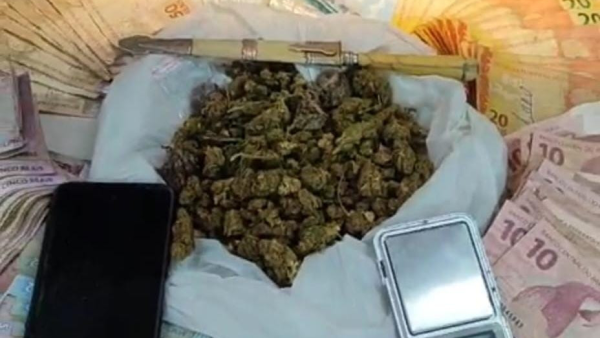 Durante as abordagens, os policiais localizaram grande quantidade de dinheiro fracionado, substâncias análogas à maconha e ao skunk, além de materiais utilizados para embalagem e comercialização dos entorpecentes.