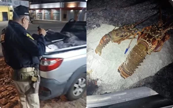 De acordo com a PRF, o condutor do carro era um homem de 47 anos que transportava lagostas das espécies vermelha e verde.