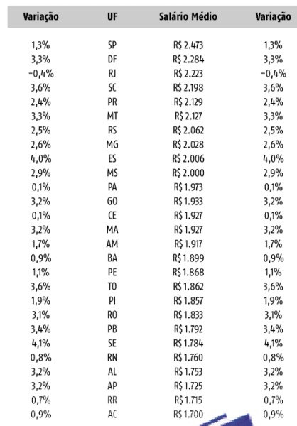 O levantamento também aponta que, apesar da tendência de alta no país, alguns estados tiveram desempenho reduzido na variação dos salários de admissão entre 2023 e 2024. O Rio de Janeiro foi o único a registrar retração, com queda de 0,4%, enquanto Ceará e Pará ficaram praticamente estáveis, ambos com aumento de apenas 0,1%. Já Acre e Bahia registraram crescimento de 0,9%, próximo dos 0,8% do Rio Grande do Norte.